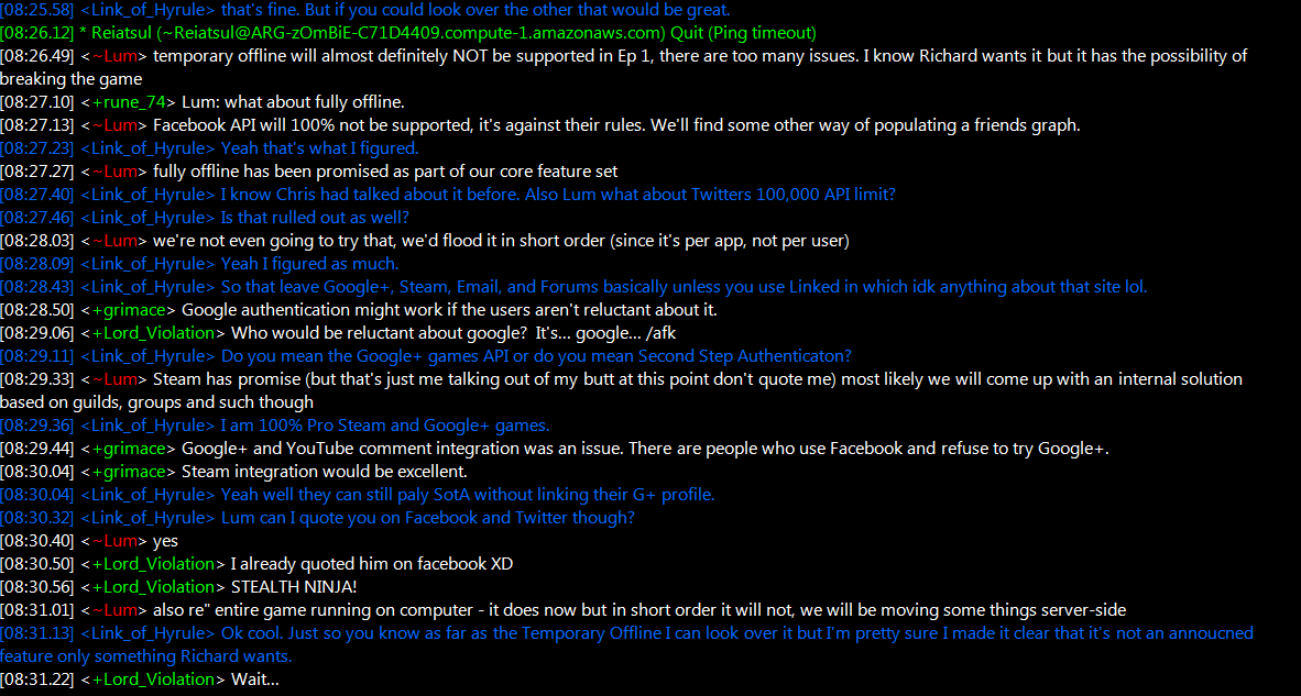 - ↑ Hangout of the Avatar ~ 1.30.14 ~ SotA Multiplayer, https://www.youtube.com/watch?v=NGowcsskbjk